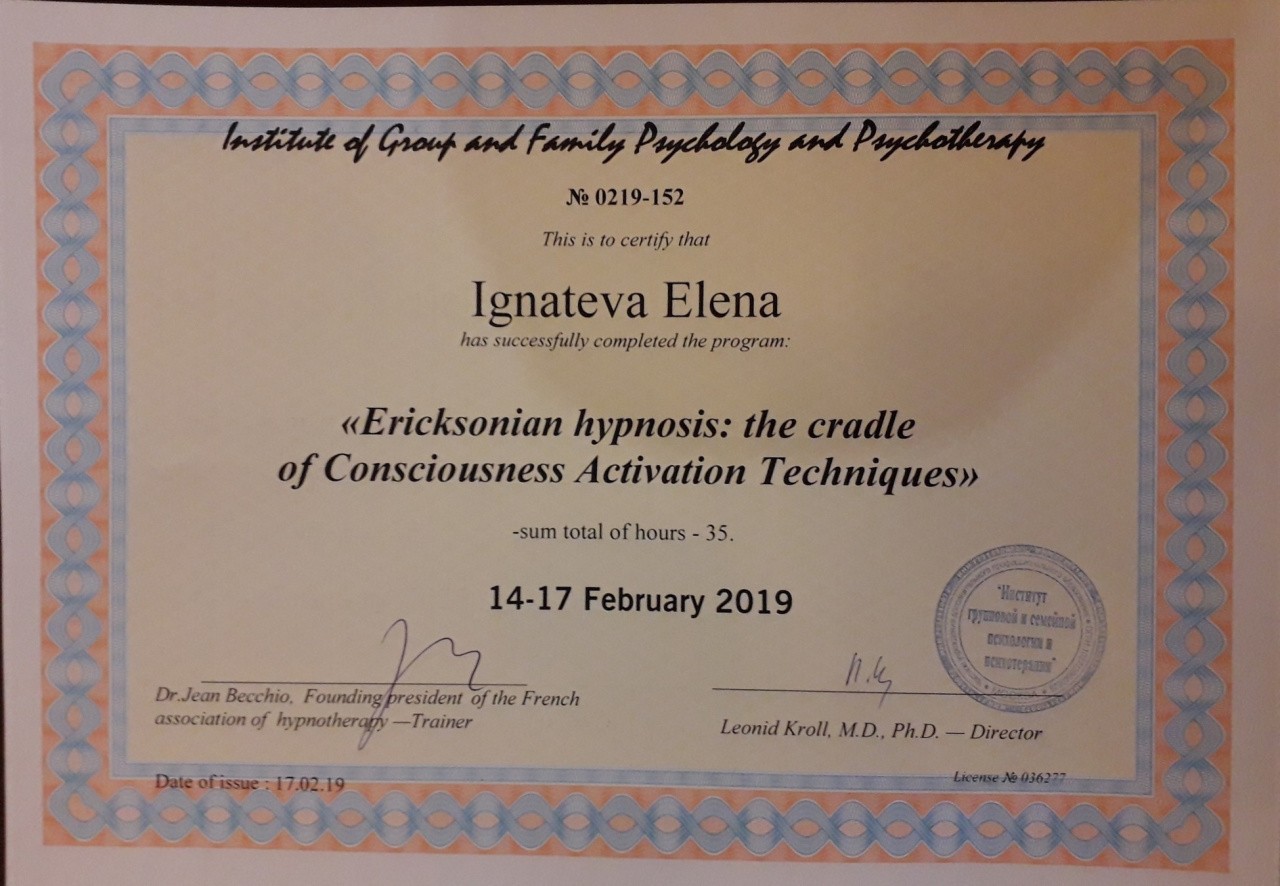 Елена Игнатьева провела уже больше 1 тыс. индивидуальных сессий. Свыше 15 тыс. человек прошли через ее онлайн-программы. Слушатели курсов Елены успешно решают свои проблемы с отношениями, финансами и здоровьем.