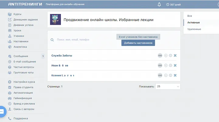 Итак, начнем с того, что на «Антитренингах» есть бесплатный пробный период сроком на 1 год с доступом к полному функционалу. Но есть и ограничение – не более 5 активных учеников.