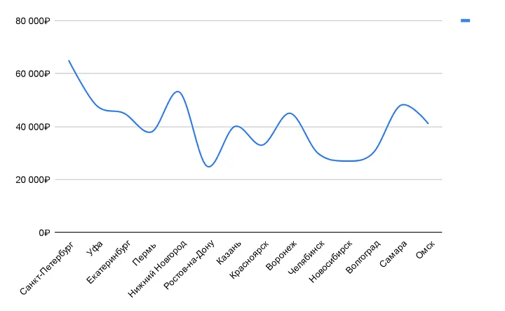 В городах с населением от миллиона человек медианные зарплаты психологов варьируют от 25 000 ₽ до 65 000 ₽: